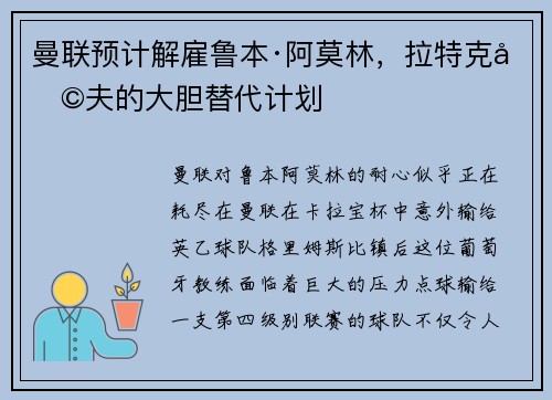夏季转会窗口进入倒计时,曼联与阿斯顿维拉正在进行最后的磋商。据多方权威消息源确认,围绕大马丁与桑乔的互换交易,双方已就核心条款基本达成一致,仅剩细节流程待敲定,这笔牵动无数球迷神经的重磅转会,有望在窗口关闭前压哨落定。对于曼联而言,推动这笔交易的核心诉求,直指门将位置的“补强焦虑”。奥纳纳频繁的门线失误与不稳定的发挥,让球队后防线多次陷入被动,也让管理层意识到,必须引进一位具备顶级大赛心态与稳定表...