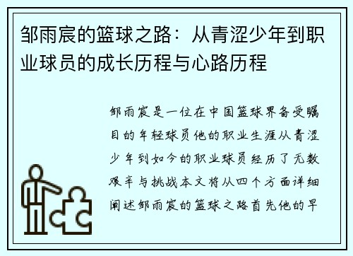 周琦,作为中国篮球的新星,其在国际赛场的崛起不仅体现了个人的努力与天赋,也展示了中国男篮日益增强的竞争力。本文将从四个方面详细探讨周琦的发展历程、面临的挑战、在国际比赛中的表现以及他对中国男篮的重要性。从一名年轻球员成长为国家队中流砥柱,周琦的一路走来充满了艰辛与奋斗,同时也激励着更多年轻运动员追逐自己的梦想。在这个过程中,周琦不仅展现了卓越的篮球技巧,更体现出顽强拼搏的精神,这使得他在国际赛场上...
